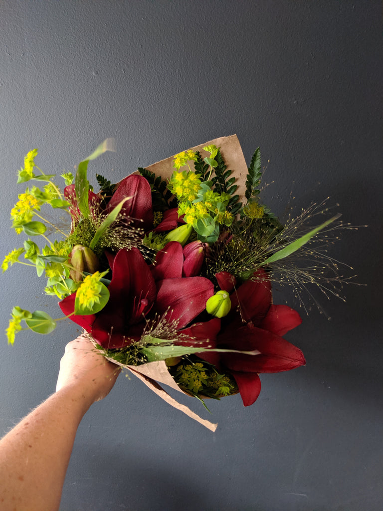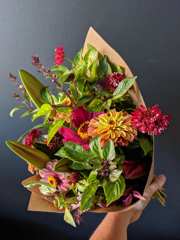 Brighten up your home with our flower bouquet pickup subscription! This is offered for pickup only at our studio on the Hill, either once every two weeks, or once a month. Your grab 'n go bouquet includes seasonal fresh flowers, often with local picks from area flower farms. These bouquets are wrapped in newspaper without a vase, so you can enjoy arranging at home.